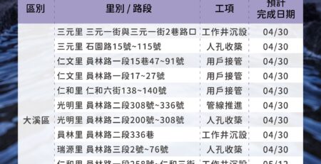 埔頂BOT污水下水道建設管網工程情報03/31-04/06 user2025-03-31T14:26:17+08:00 user 在〈埔頂BOT污水下水道建設管網工程情報03/31-04/06〉中留言功能已關閉 載自桃園市政府水務局FB《水利重點工程Meet桃報》 https://www.facebook.com/wbrtycg/?locale=zh_TW 瀏覽總人數: 2,101 , 今日瀏覽人數: 5