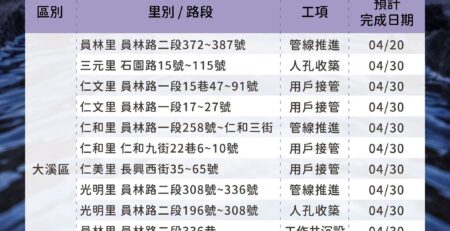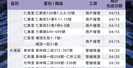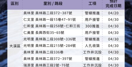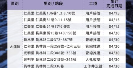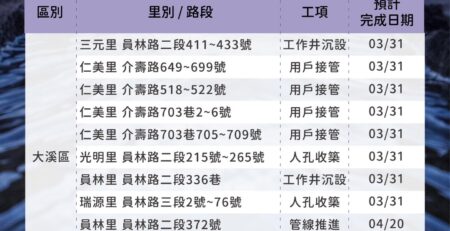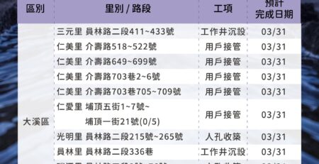 埔頂BOT污水下水道建設管網工程情報04/14-04/20 user2025-04-15T10:52:08+08:00 user 在〈埔頂BOT污水下水道建設管網工程情報04/14-04/20〉中留言功能已關閉 載自桃園市政府水務局FB《水利重點工程Meet桃報》 https://www.facebook.com/wbrtycg/?locale=zh_TW 瀏覽總人數: 1,987 , 今日瀏覽人數: 1