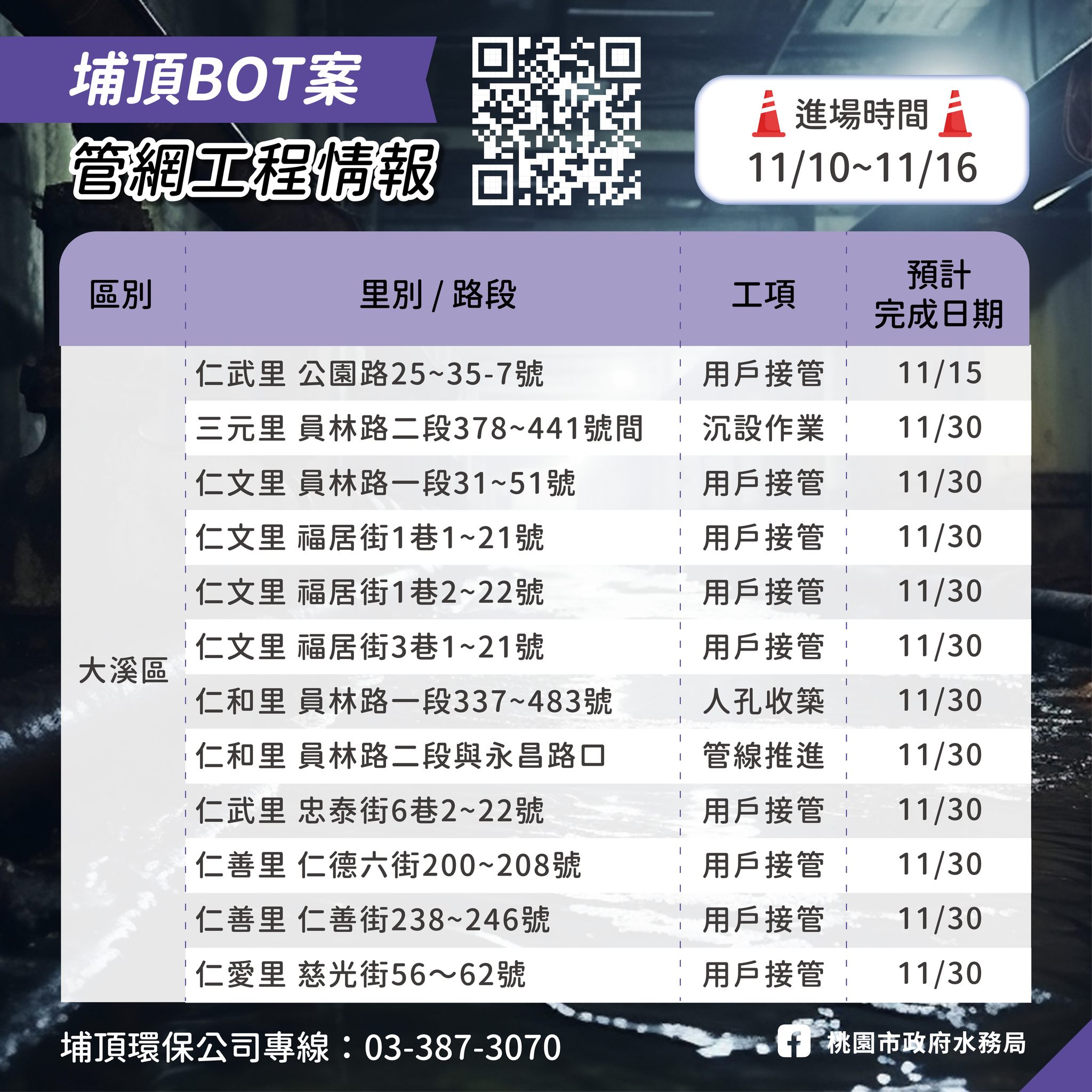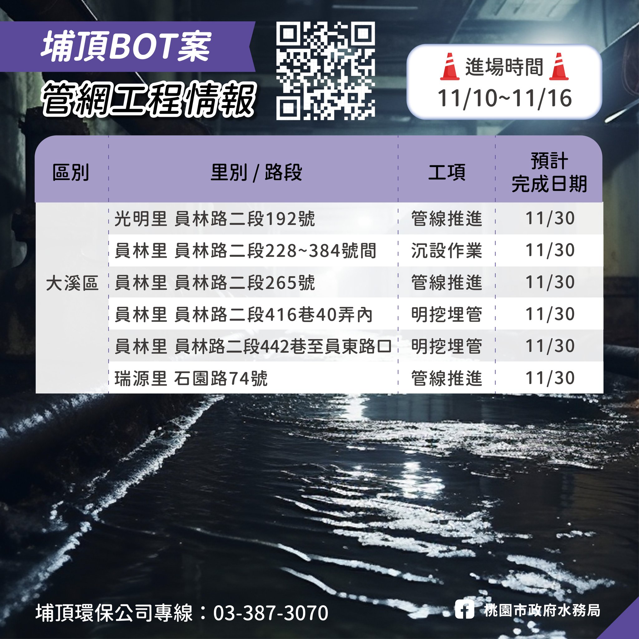 埔頂BOT污水下水道建設管網工程情報11/10-11/16 user2025-11-10T15:25:23+08:00 user 在〈埔頂BOT污水下水道建設管網工程情報11/10-11/16〉中留言功能已關閉 載自桃園市政府水務局FB《水利重點工程Meet桃報》 https://www.facebook.com/wbrtycg/?locale=zh_TW 瀏覽總人數: 212 , 今日瀏覽人數: 7
